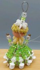 Vtg Handmade Green & White Bead Safety Pin Lady In Dressornament Folk Tramp Art