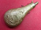 2 Antique Repousse Decorated Copper Powder Flasks C. 1850