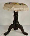 Antique Piano Bench Stool Seat Fabric Top Iron Legs Wood Base Primitive Stool