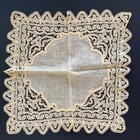 Antique Cream Handkerchief Handmade Bobbin Lace Yellow Embroidered 12x12β