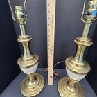 Vintage 39" Tall 1960's Stiffel Brass Table Lamp With Marble Base Flame Top