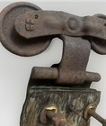 Antique Cast Iron Barn Industrial Door Roller Hanger Wood Attached Ny 1800's