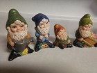 Vtg Lot Of 4 1970s Ceramic Garden Dwarves / Gnomes, 9" Long, Handpainted -nice!