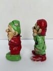 Vintage Gnome Elf Ceramic Figurines Set Of Two Red & Green 1970s See Pics