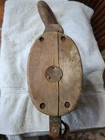 Antique Industrial Single Wood Block Pulley 9” Long See Description