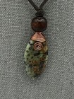 Copper Wire Wrapped Jasper Pendant Necklace With Adjustable Rope Chain