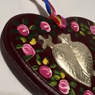 Silver Milagros Miracles Hand Painted Folk Art Wood Burgundy Heart