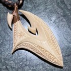 Sperm Whale Jawbone Bone Carving Fish Hook Necklace Pendant Amulet Japan