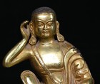 6'' Old Tibet Buddhism Bronze Gilt Sit Milarepa Buddha Deer Head Animal Statue