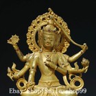 6'' Old Tibet Buddhism Temple Bronze Gilt 4 Arms Hand Chenrezig Buddha Statue