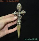 6"old Tibetan Buddhism Bronze Gilt Silver Mahakala Head Vajra Phurpa Dagger Faqi