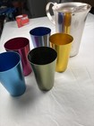 Rare Vintage Mcm Colorful Anodized Aluminum Tumblers With Pitcher & Caddy