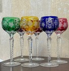 Set Of 6 Hungarian Cut To Clear Crystal Wine Goblets Hand Cut 24% Pbo Long Stem