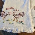 Vtg. Pair Of Hen & Chicks Flour Sack Kitchen Towels Hand Embroidered Farmhouse