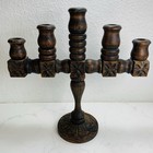 Vintage 5-arm Wooden Metal Candelabra Candle Holder Distressed & Gorgeous