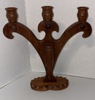 Mcm Vintage Carved Wooden Candelabra 3 Arm German 1960-1970's