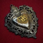 Vintage Ex Voto Sacred Heart Tattoo Vintage Engraving 9x7 Cm Silver Plate