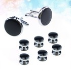 8pcs Mens Cuff Links And Studs Set Silver Black Tuxedo Shirt Cufflinks For Bu...