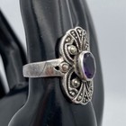 925 Sterling Silver Vintage Purple Amethyst & Marcasite Gem Ring Size 7.5 P