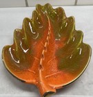 Beautiful Vtg Mcm 1960’s Orange, Green & Gold Trim Ceramic Ashtray - Calif Usa