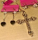 Betsey Johnson 3 Piece Set Necklace W/ Rhinestone Cross Pendant And Earrings Nwt