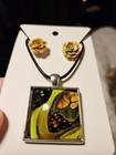 Acrylic Paint Pendant Necklace & Earrings Set 0187