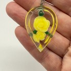 Vintage Lucite Pendant Necklace And Earring Set Teardrop Yellow Roses