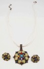 Vintage Multicolor Beaded Multi Strands Pendant Jewelry Necklace Earrings Set