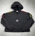 Adidas Originals Cropped Half Zip Jacket Women L Black Colorful 3 Stripe-euc