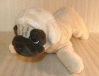 Russ Berrie Plush Puppy Dog 12 Inch Cream Brown Looks Worried Wrinkled Brow