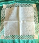 Embroidered Linen Handkerchief Off-white Ivory Lace Trim Bridal 11.5in Square