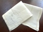 2 Vintage Embroidered Ivory Linen Bridal Handkerchiefs With Crocheted Edge