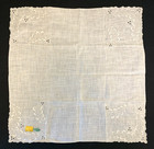 Vintage Embroidered Lace White Linen Wedding Bridal Handkerchief Nice Condition