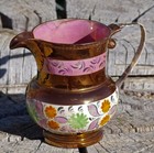 Antique Copper Luster Ware 1840s Creamer Hand Painted Pretty 3+”