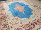 *10"x13' Original Antique Cr1920 Krman Hand Knotted Medallion Fine Wool Blue Rug