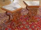 19th Century Walnut Figural Renaissance Revival Italian Marble Top End Tables