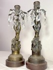 Pair Antique 19th Century Victorian Crystal Bronze Mermaid Girandole Candelabras