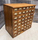 Multi Drawer Antique Oak Store Parts Cabinet 45 In. Wide