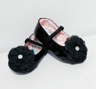 Antique Vtg Little Girls Shoes Lot Of 3 Pair Black Patent Leather Velvet Flats