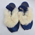 Vtg Antique Children Girls Shoes Blue Satin Fur Classy Formal Sandals