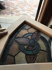 Vintage Stained Glass Window Panel Hanging Arched 23" By 13.5"
