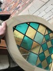 2 Vintage Reclaimed Arched Leaded Geometric Diamond Stained Glass Windows Pair