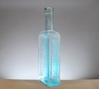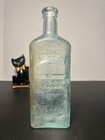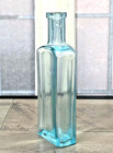 Unique Antique Medicine/cosmetic Bottle, Early 1900s, Square, Bluish Aqua, 4 ½”