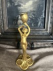 Antique Art Nouveau Mini Standing Frame Nymphs Semi-nude Woman Gold Gilt Bronze