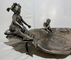 Excellent Art Nouveau Jugendstil Pewter Fruit Stand Bowl Maiden Boy Carp Pond