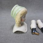 Bisque Antique Repro Shoulder Head Doll Green Hat W Legs & Arms