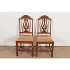 Berkey & Gay Style Antique Jacobean Walnut Side Chairs Or Dining Chairs, Pair