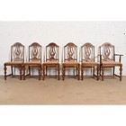 Berkey & Gay Style Antique Jacobean Carved Walnut Dining Chairs, Set Of Six