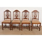 Berkey & Gay Style Antique Jacobean Carved Walnut Dining Chairs, Set Of Four