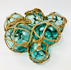 Set Of 6 Vintage Japanese Glass Fishing Floats 9cm Hand-blown Aqua Green W/ Nets